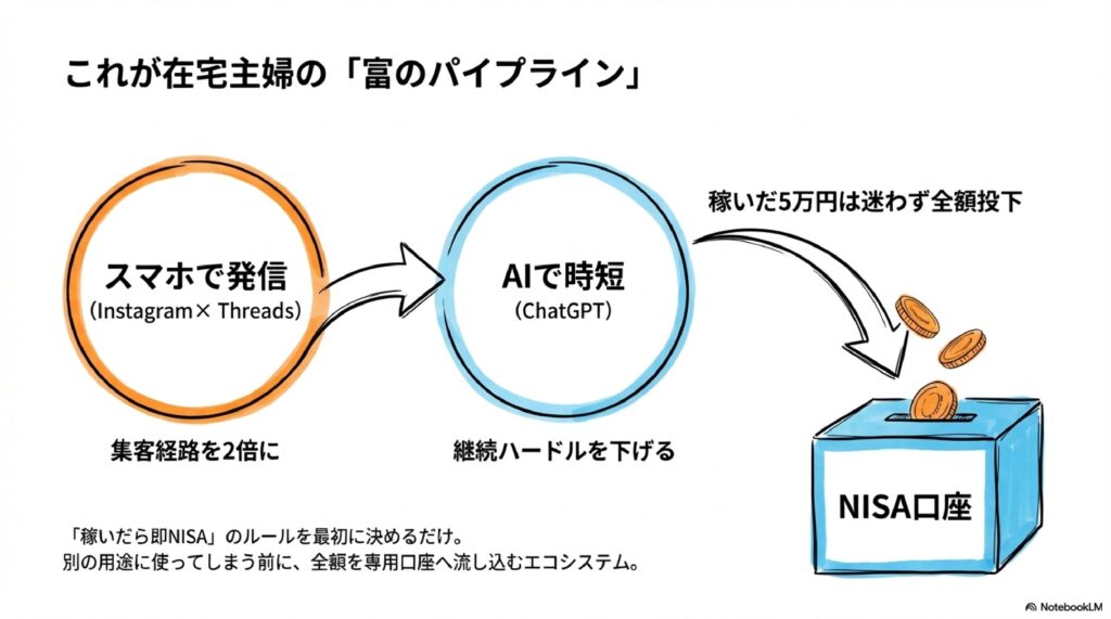 → [AI×Instagramで主婦が月5万稼ぐ完全ロードマップ【2026年版】]