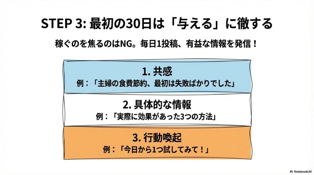STEP 3:最初の30日間は「与えること」だけに集中する