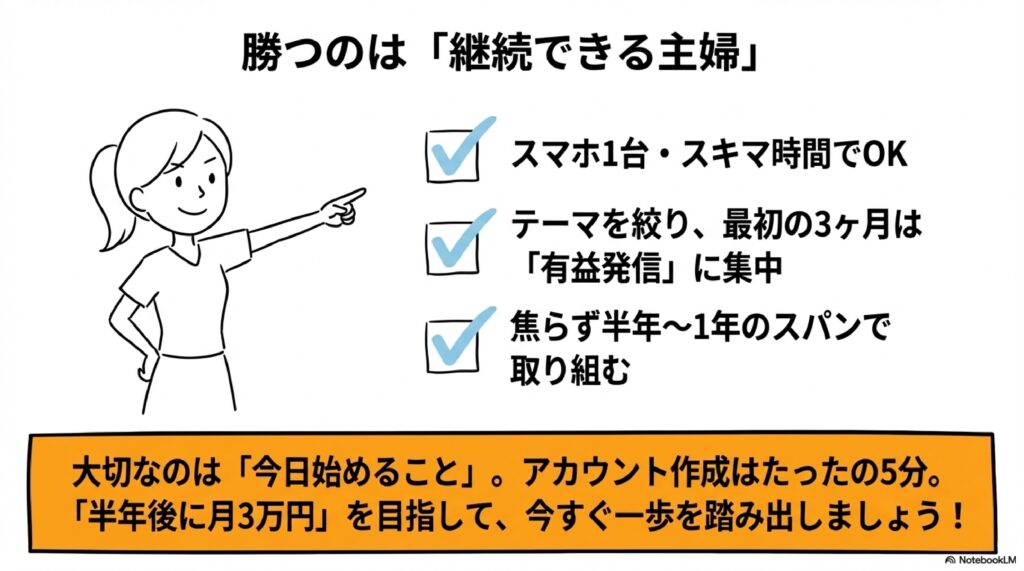 まとめ:Threads副業は「継続できる主婦」が勝つ
